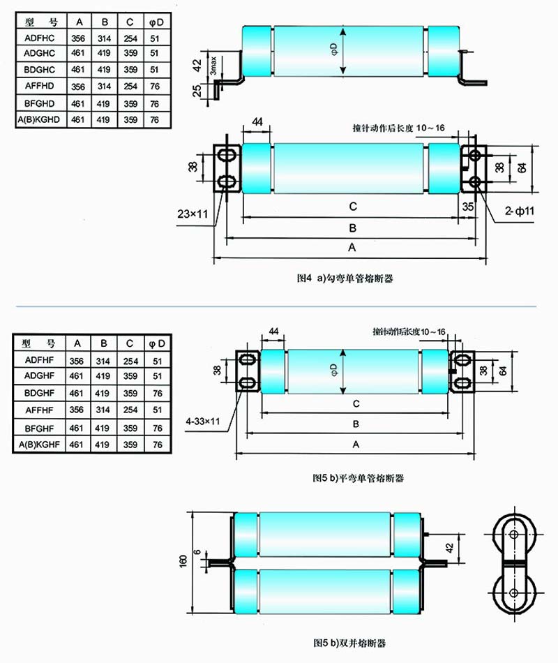 注: 1、以上为单管额定参数,可根据用户需要采用固定结构将熔断器并联,以得到高的额定电流值: